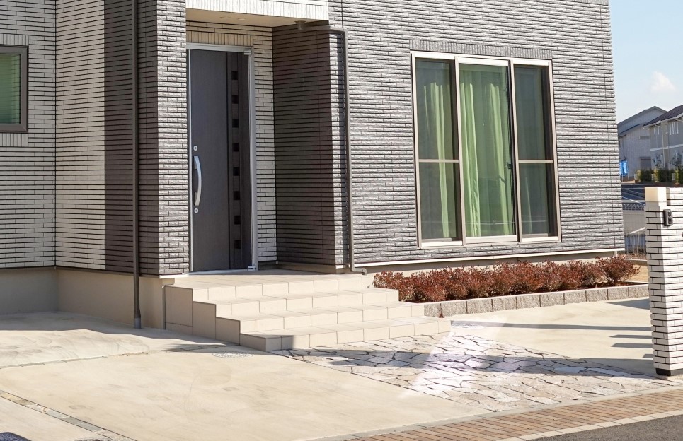 出雲市内で玄関アプローチをシンプルにコンクリート舗装にしたい方