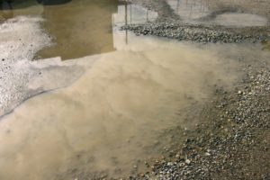 車がよく通る場所などは、えぐれてそこに水たまりができて